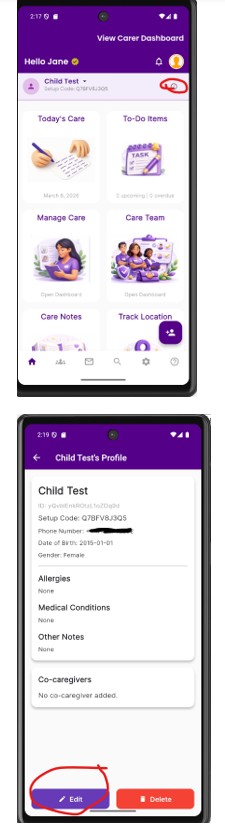 Co-Caregivers have the same visibility and permissions as the Primary Caregiver.