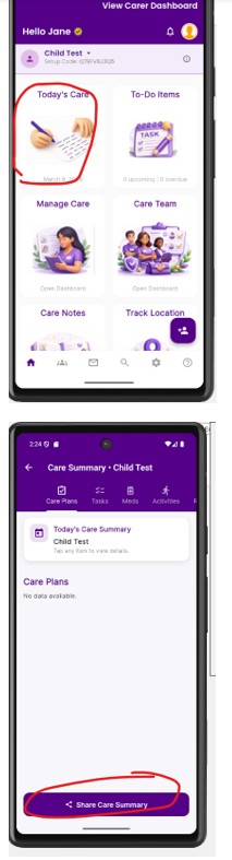 - Open the Today’s Care tab